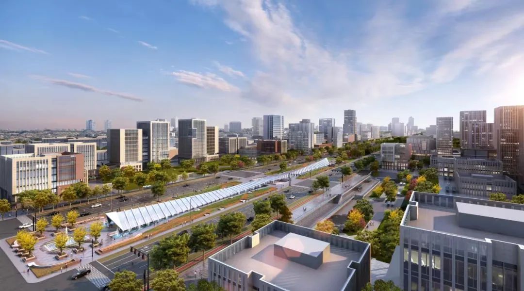 松江高鐵站站房位于上海市松江區(qū),站房建筑規(guī)模達6萬平方米,站場規(guī)模為7臺19線,加上原松江南站2臺4線,站場總規(guī)模將達到9臺23線。松江南站采用站城綜合體式設計,配備高架落客平臺、城市交通換乘服務中心等設施,為旅客提供更為便捷的出行體驗。同時,新站房的設計還融入了“云間映玉蘭、花開無限環(huán)”的寓意,與上海市松江區(qū)城市文脈相契合。