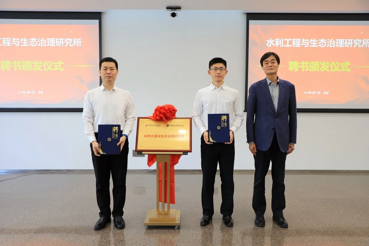 樊金龍、化建新、張沖共同為“水利工程與生態治理研究所”揭牌。李軍為所長毛宗原、副所長韓凱頒發聘書。