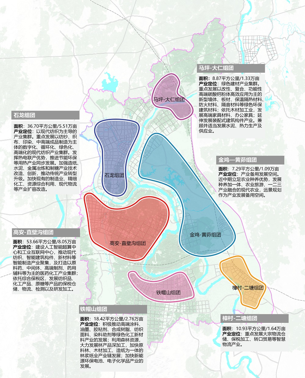 特色產(chǎn)業(yè)集群布局——綜合考慮自身優(yōu)勢資源、臨港產(chǎn)業(yè)基本形態(tài)、大灣區(qū)產(chǎn)業(yè)外溢、上位政策與規(guī)劃導(dǎo)向等影響因素的基礎(chǔ)上,三江口新區(qū)的產(chǎn)業(yè)選擇按照“灣區(qū)所需、來賓所長”和“來賓所缺、灣區(qū)所溢”的思路進(jìn)行取舍,重點(diǎn)打造綠色建材、現(xiàn)代紡織、醫(yī)藥化工、林漿紙一體化、新能源新材料、智慧物流六大產(chǎn)業(yè)集群。