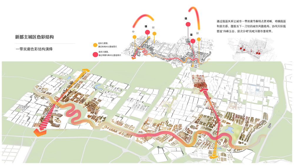 項目概述,本項目是成都市十四五規劃中城市有機更新的重點工程,包含五個設計子項,“策劃規劃一體化”的設計方式通過城市問題導向研究、城市空間文脈研究和SWOT戰略發展定位研究。